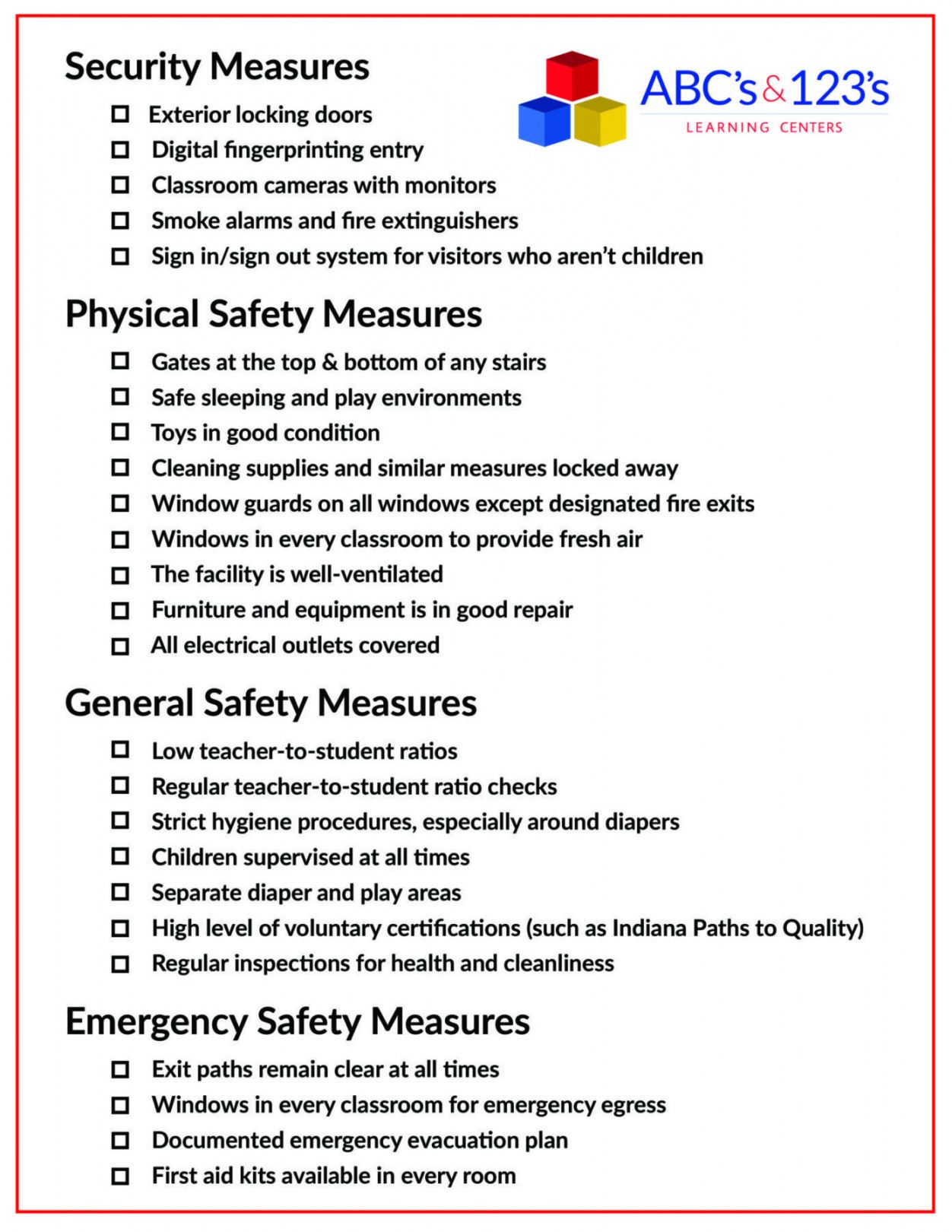Top suggestions for Child Care Safety Checklist