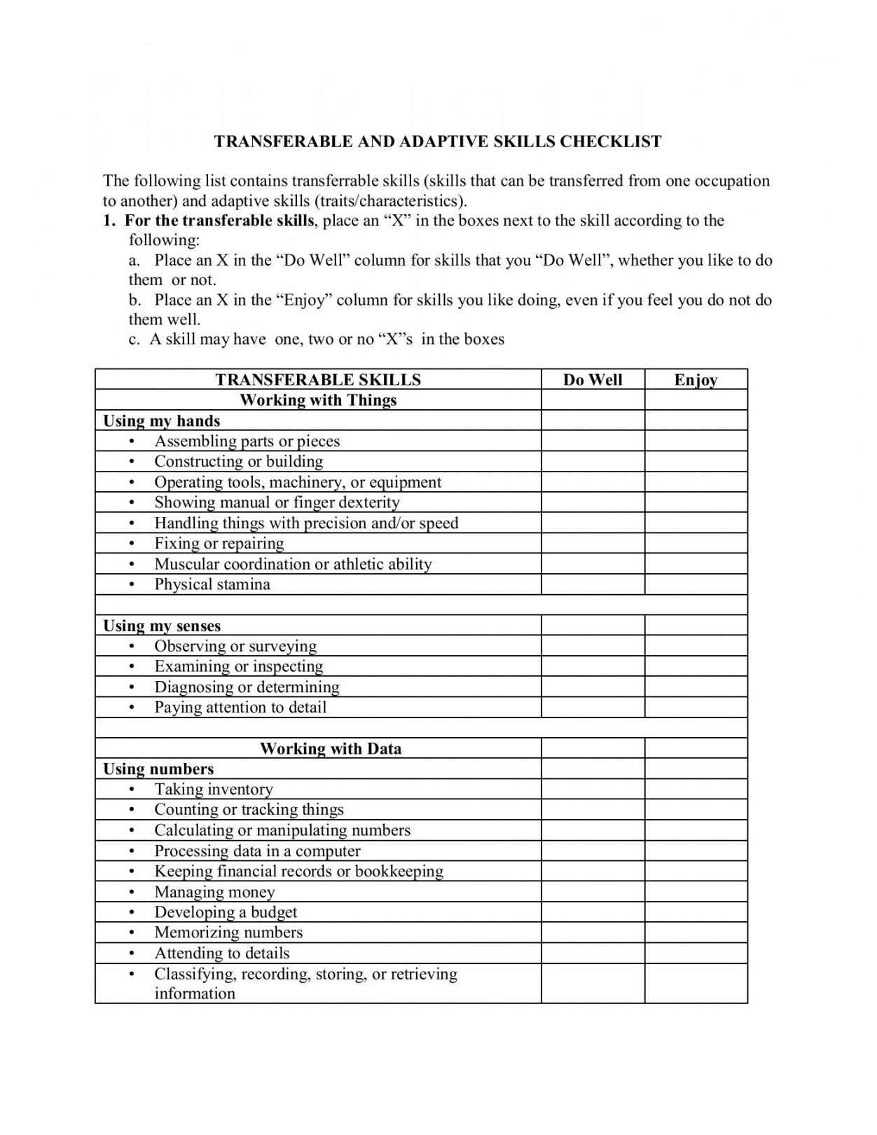 Skills checklist worksheet | Li…